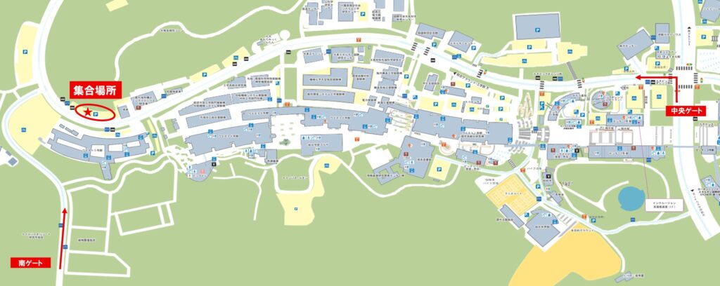 ウエスト5号館農学部向かいの駐車場に集合してください。