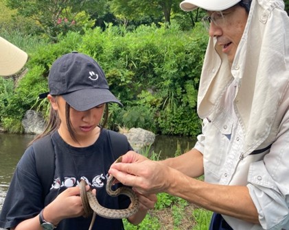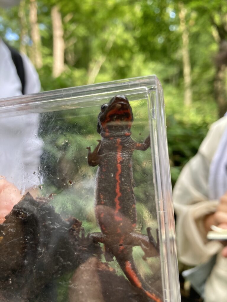 シマヘビ、タカハヤ、アブラハヤ、ヤンマ系のヤゴ、ムカシトンボのヤゴ、オニヤンマ、アカハライモリ、など多くの動物を観察することができました。