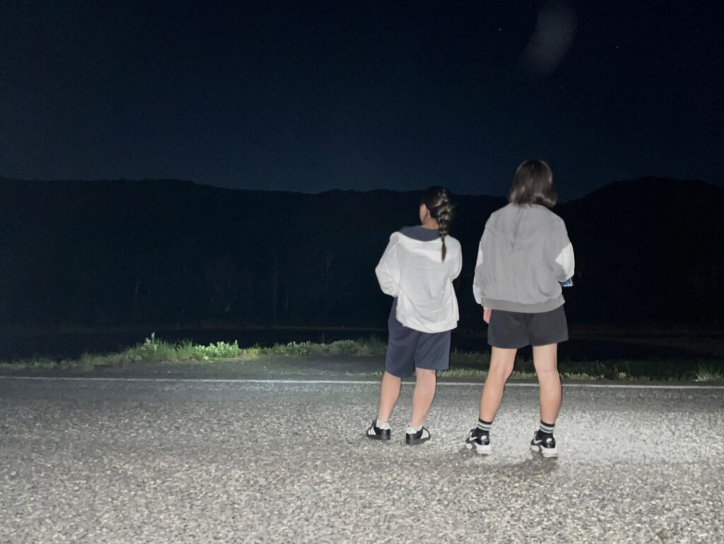 午後からは、真庭市蒜山郷土博物館で地域の歴史・文化・自然に関しての学習や、蒜山高原周辺をライトセンサス(暗闇を懐中電灯で照らしながら哺乳類の調査を行うこと)を行いました。