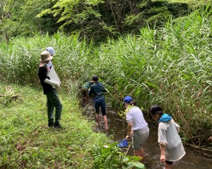 津黒いきものふれあいの里敷地内の水辺でフィールドワークを実施しました。